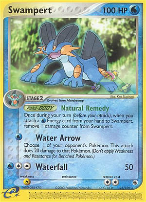 Einmal in deinem Zug (vor deinem Angriff), wenn du eine -Energiekarte von der Hand an Sumpex anlegst, entferne 1 Schadensmarke von Sumpex.