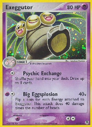Kosten: Flip a coin for each Energy attached to Exeggutor. This attack does 40 damage times the number of heads.  Schaden: