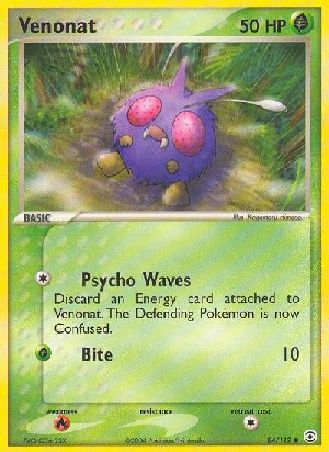 Kosten: Discard an Energy card attached to Venonat. The Defending Pokémon is now Confused.  Schaden: