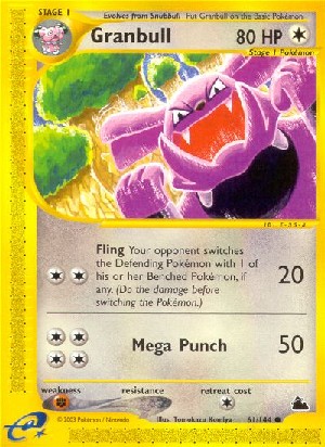 Kosten: Dein Gegner tauscht das verteidigende Pokemon mit 1 der Pokemon auf seiner Bank aus. (Fügt die Schadenspunkte vor dem Asutausch der Pokemon zu)  Schaden:
