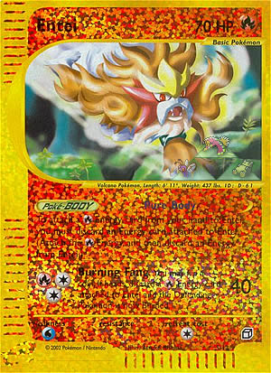 Du kannst eine Münze werfen. Lege bei "Kopf" eine an Entei angelegte -Energiekarte auf deinen Ablagestapel, und das Verteidigende Pokémon ist jetzt verbrannt.