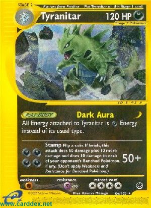 Kosten: Wirf eine Münze. Bei 'Kopf' fügt dieser Angriff 50 Schadenspunkte plus 10 weitere Schadenspunkte zu und außerdem jedem Pokemon auf der Bank deines Gegners 10 Schadenspunkte, falls vorhanden. (Wende Schwäche und Resistenz bei Pokemon auf der Bank nicht an.)  Schaden: