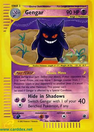 Einmal während deines Zuges (vor deinem Angriff) kannst du, falls dein Gegner 3 oder weniger Preise hat, 1 Schadensmarke von 1 Pokémon (von dir oder deinem Gegner) nehmen und auf ein anderes legen (selbst wenn dies das andere Pokémon kampfunfähig macht). Diese Fähigkeit kann nicht verwendet werden, falls Gengar von einem Speziellen Zustand betroffen ist.