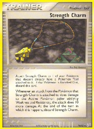 Lege Stärkeamulett an 1 deiner Pokémon an, das keine Pokémon-Ausrüstung hat. Wenn dieses Pokémon kampfunfähig wird, lege diese Karte auf deinen Ablagestapel.