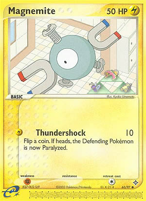 Kosten: Flip a coin. If heads, the Defending Pokémon is now Paralyzed.  Schaden: