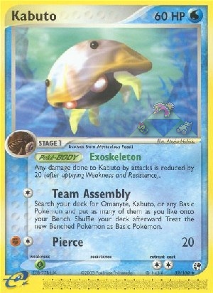 Durchsuche dein Deck nach Amonitas, Kabuto oder beliebigen Basis-Pokémon und lege so viele wie du möchtest von ihnen auf deine Bank. Mische dein Deck danach. Behandle die neuen Pokémon wie Basis-Pokémon.