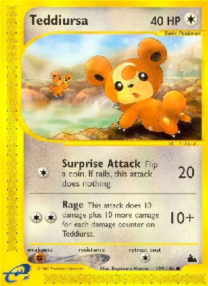 Kosten: Dieser Angriff fügt 10 Schadenspunkte plus 10 zusätzliche Schadenspunkte für jede Schadensmarke auf Teddiursa zu.  Schaden: