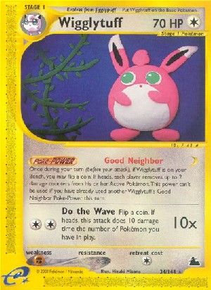 Einmal während deines Zuges (vor deinem Angriff) kannst du, falls Knuddeluff auf deiner Bank ist, eine Münze werfen. Bei "Kopf" entfernt jeder Spieler 2 Schadensmarken von seinem aktiven Pokémon. Diese Fähigkeit kann nicht verwendet werden, falls du in diesem Zug bereits die Poké-Power "Guter Nachbar" eines anderen Knuddeluffs verwendet hast.