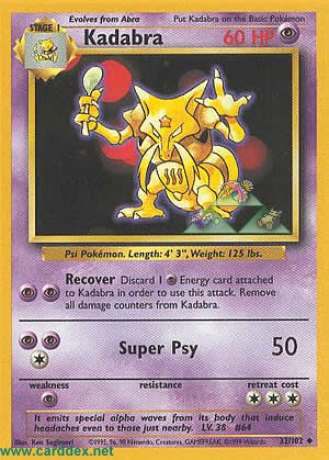 Kosten: Entferne eine auf kadabra abgelegte Energiekarte, um diesen Angriff auszuführen. Entferne alle Schadensmarken von Kadabra.  Schaden: