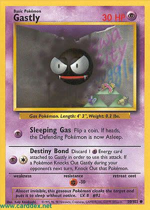 Entferne eine auf Nebulak abgelegte Energiekarte, um diesen Angriff auzuführen. Falls ein Pokemon Nebulak während des nächsten gegnerischen Zugs kampufunfähig macht, mache dieses Pokemon kampfunfähig.