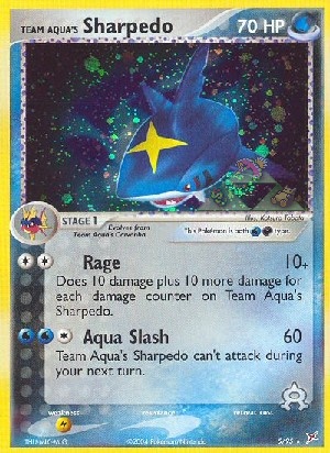 Kosten: Does 10 damage plus 10 more damage for each damage counter on Team Aqua's Sharpedo.  Schaden:
