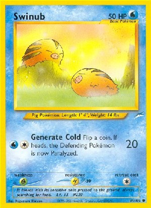 Kosten: Flip a coin. If heads, the Defending Pokémon is now Paralyzed.  Schaden: