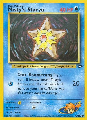 Kosten: Flip a coin. If heads, return Misty's Staryu and all cards attached to it to your hand. (Either way, this attack does its damage.)  Schaden:
