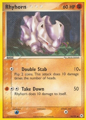 Kosten: Rhyhorn does 10 damage to itself.  Schaden: