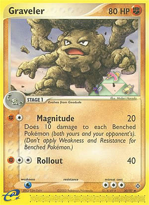 Kosten: Does 10 damage to each Benched Pokémon (both yours and your opponent's). (Don't apply Weakness and Resistance for Benched Pokémon.)  Schaden: