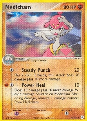 Kosten: Does 10 damage plus 10 more damage for each damage counter on Medicham. After doing damage, remove 1 damage counter from Madicham.  Schaden: