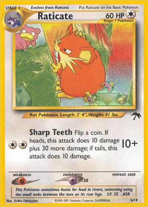 Kosten: Flip a coin. If heads, this attack does 10 damage plu 30 more damage; If tails, this attack does 10 damage.  Schaden: