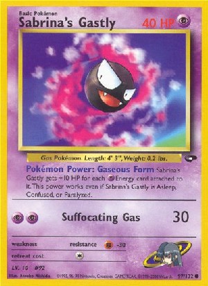 Sabrina's Gastly gets +10 HP for each Energy card attached to it. This power works even if Sabrina's Gastly is Asleep, Confused, or Paralyzed.