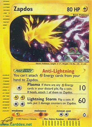 Kosten: Wirf eine Münze. Lege bei "Zahl" 2 Schadensmarken auf Zapdos.  Schaden: