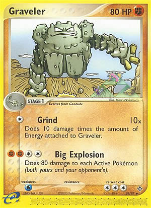 Kosten: Does 10 damage times the amount of Energy attached to Graveler.  Schaden: