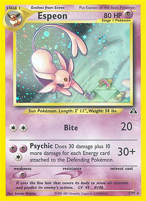 Kosten: Doaes 30 damage plus 10 more damage for each Energy card attached to the Defending Pokemon.  Schaden: