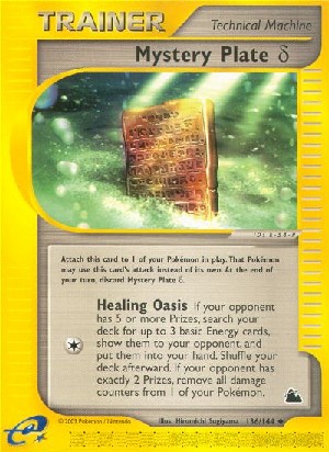 Hat dein Gegner 5 oder mehr Preise, durchsuche dein Deck nach bis zu 3 Basis-Energiekarten, zeige sie deinem Gegner und nimm sie auf deine Hand. Mische dein Deck danach. Hat dein Gegner 2 Preise, entferne alle Schadensmarken von 1 deiner Pokemon.