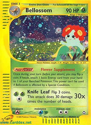 Einmal während deines Zuges (vor deinem Angriff) kannst du eine Münze werfen. Lege bei 'Kopf' 1 Basis-Energiekarte aus deiner Hand an 1 deiner Pokémon auf deiner Bank an. Diese Fähigkeit kann nicht verwendet werden, falls Blubella von einem Speziellen Zustand betroffen ist.