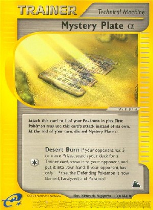 Lege diese Karte an 1 deiner Pokémon im Spiel an. Dieses Pokémon kann den Angriff dieser Karte anstatt seines eigenen verwenden. Lege am Ende deines Zuges das Geheimnis-Schild (Alpha) auf deinen Ablagestapel.