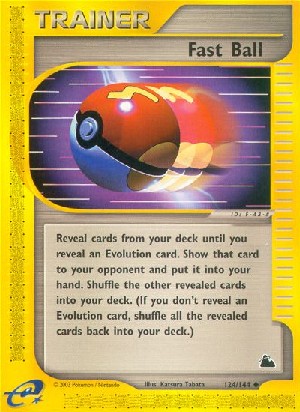 Beschreibung: Decke Karten aus deinem deck auf, bis du eine Entwicklungskarte aufdeckst. Zeige diese Karte deinem Gegner und nimm sie auf deine Hand. Mische die anderen aufgedeckten Karten in dein Deck. (Ist unter den aufgedeckten Karten keine Entwicklungskarte, mische alle aufgedeckten karten zurück in dein Deck.)
