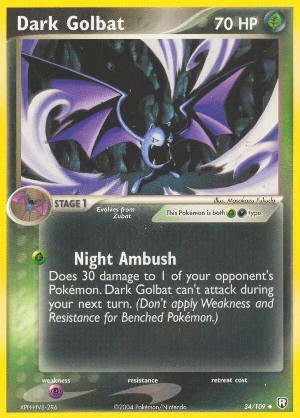 Does 30 damage to 1 of your opponent's Pokémon. Dark Golbat can't attack during your next turn. (Don't apply Weakness and Resistance for Benched Pokémon.)