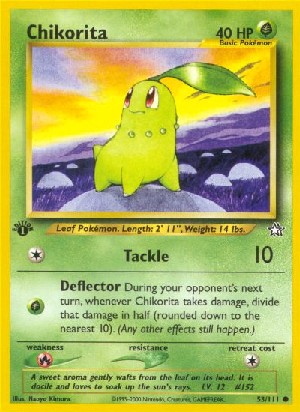 During your opponent's next turn, whenever Chikorita takes damage, divide that damage in half (rounded down to the nearest 10). (Any other effects still happen.)