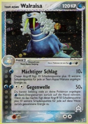 Kosten: Does 10 damage plus 10 more damage for each Energy card attached to Team Aqua´s Walrain.  Schaden: