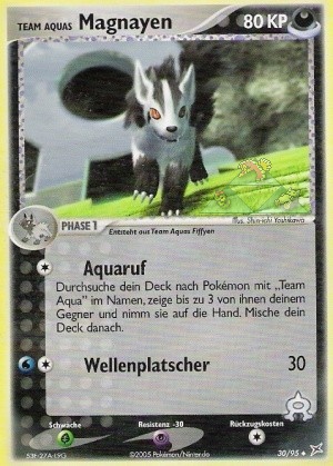 Search your deck for Pokémon that has Team Aqua in its name, show up to 3 of them to your opponent, and put them into your hand. Shuffle your deck afterward.