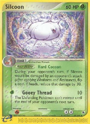 During your opponent's turn, if Silcoon would be damaged by an opponent's attack (after applying Weakness and Resistance), flip a coin. If heads, reduce that damage by 30.