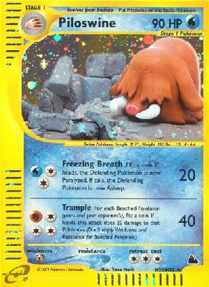 Kosten: Wirf für jedes Pokemon auf der Bank (auf deiner und der deines Gegners) eine Münze. Bei 'Kopf' fügt dieser Angriff jedem Pokemon 20 Schadenspunkte zu. (Wende keine Schwäche oder Resistenz bei Pokemon auf der Bank an.)  Schaden: