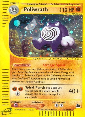 Einmal während deines Zuges (vor deinem Angriff) kannst du, falls Quappo dein aktives Pokemon ist, eine an Quappo angelegte Basis-Energiekarte auf deinen Ablagestapel legen. Falls du dies tust, ist das verteidigende Pokemon jetzt verwirrt. Fähigkeit kann nicht verwendet werden, falls Quappo von einem speziellen Zustand betroffen ist.