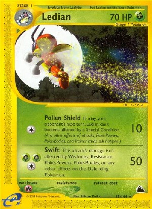 Während des nächsten gegenerischen Zugs kann Ledian nicht von speziellen Zuständen betroffen werden. (Alle anderen Effekten von Angriffen, Poke-Powers, Poke-Bodies und Trainerkarten finden immer noch statt.