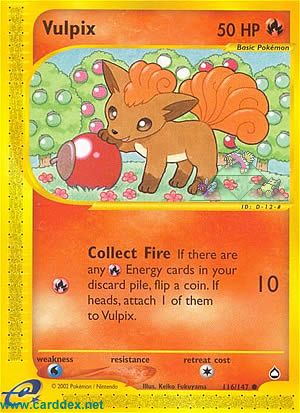 Kosten: Wenn mindestens eine -Energiekarte in deinem Ablagestapel ist, wirf eine Münze. Lege bei "Kopf" 1 davon an Vulpix an.  Schaden: