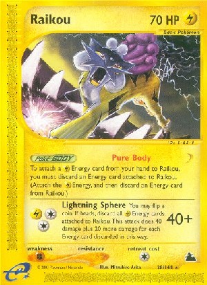 Du kannst eine Münze werfen. Lege bei 'Kopf' alle an Raikou angelegten -Energiekarten auf deinen Ablagestapel. Dieser Angriff fügt 40 Schadenspunkte plus 20 weitere Schadenspunkte für jede auf diese Weise abgelegte Energiekarten zu.