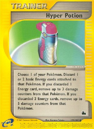 Beschreibung: Wähle eines deiner Pokemon. Lege 1 oder 2 an dieses Pokemon angelgte Basis-Energiekarten auf deinen Ablagestapel. Hast du 1 Energiekarte auf deinen Ablagestapel gelegt, entferne bis zu 3 Schadensmarken von diesem Pokemon. Hast du 2 Energiekarten auf deinen Ablagestapel gelegt, entferne bis zu 5 Schadensmarken von deinem Pokemon.