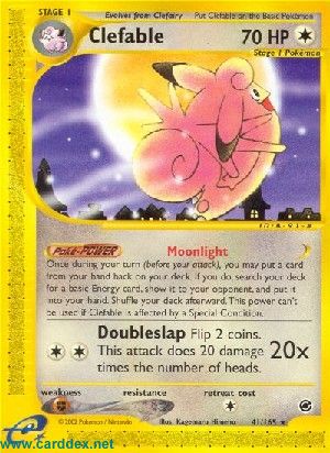 Einmal während deines Zuges (vor deinem Angriff) kannst du eine Karte aus deiner Hand oben auf dein Deck legen. Falls du dies tust, durchsuche dein Deck nach einer Basis-Energiekarte, zeige sie deinem Gegner und nimm sie auf deine Hand. Mische dein Deck danach. Diese Fähigkeit kann nicht verwendet werden, falls Pixi von einem Speziellen Zustand betroffen ist.