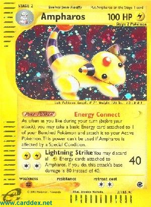 Du darft in deinem Zug so oft, wie du willst (vor deinem Angriff), eine Basis-Energiekarte, die an 1 deiner Pokemon auf der Bank angelegt ist, nehmen und an dein Aktives Pokemon anlegen. Diese Fähigkeit kann nicht verwendet werden, falls Ampharos von einem Speziellen Zustand betroffen ist.