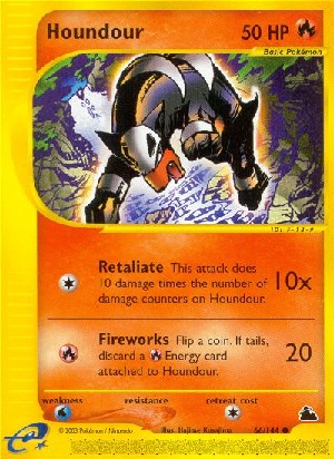 Kosten: Wirf eine Münze. Lege bei "Zahl" eine an Hunduster angelegte -Energiekarte auf deinen Ablagestapel.  Schaden: