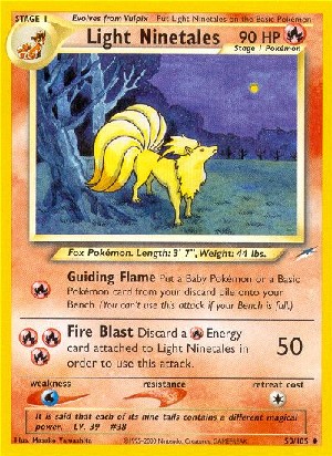 Kosten: Discard a Energy card attached to Light Ninetales in order to use this attack.  Schaden:
