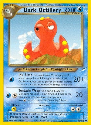 Kosten: Dieser Angriff fügt 20 Schadenspunkte plus 10 weitere Schadenspunkte für jeden an Dunkles Octillery angelegte Energiekarte, die nicht verwendet wurde, um für die Energiekosten dieses Angriffs zu bezahlen, zu. Du kannst auf diese Weise höchstens 20 weitere Schadenspunkte zufügen.  Schaden: