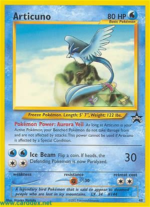 As long as Articuno is your Active Pokémon, your Benched Pokémon do not take damage from and are not affected by attacks. This power cannot be used if Articuno is affected by a Special Condition.