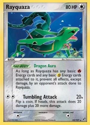 As long as Rayquaza has any basic Energy cards and any basic Energy card attached to it, prevent all effects, except damage, by an opponent's attack done to Rayquaza.