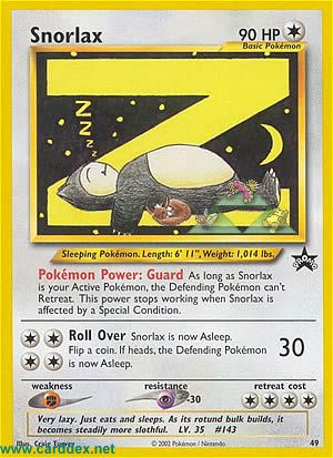 As long as Snorlax is your Active Pokémon, the Defending Pokémon can't Retreat. This power stops working when Snorlax is affected by a Special Condition.
