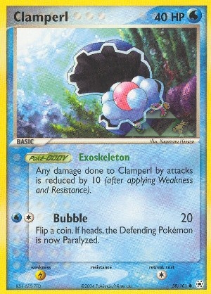 Any damage done to Clamperl by attacks is reduced by 10 (after applying Weakness and Resistance).