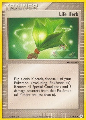 Beschreibung: Flip a coin. If heads, choose 1 of your Pokémon (excluding Pokémon-ex). Remove all Special Conditions and 6 damage counters from that Pokémon (all if there are less than 6).